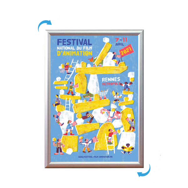 Changement ultra-rapide des affiches, posters et autres documents grâce au système clippant des cadres Clic-Clac.