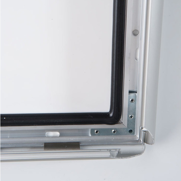 - Cadres clippants en aluminium anodisé naturel avec profilés rabattables et coins angle droit 90°.