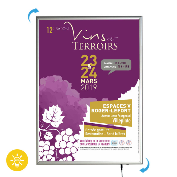 • Mise en place de vos affiches et visuels par ouverture à l’avant des 4 profilés.