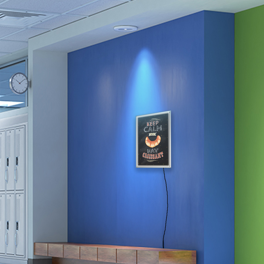 - Mise en place de vos affiches et visuels par ouverture à l’avant des 4 profilés.