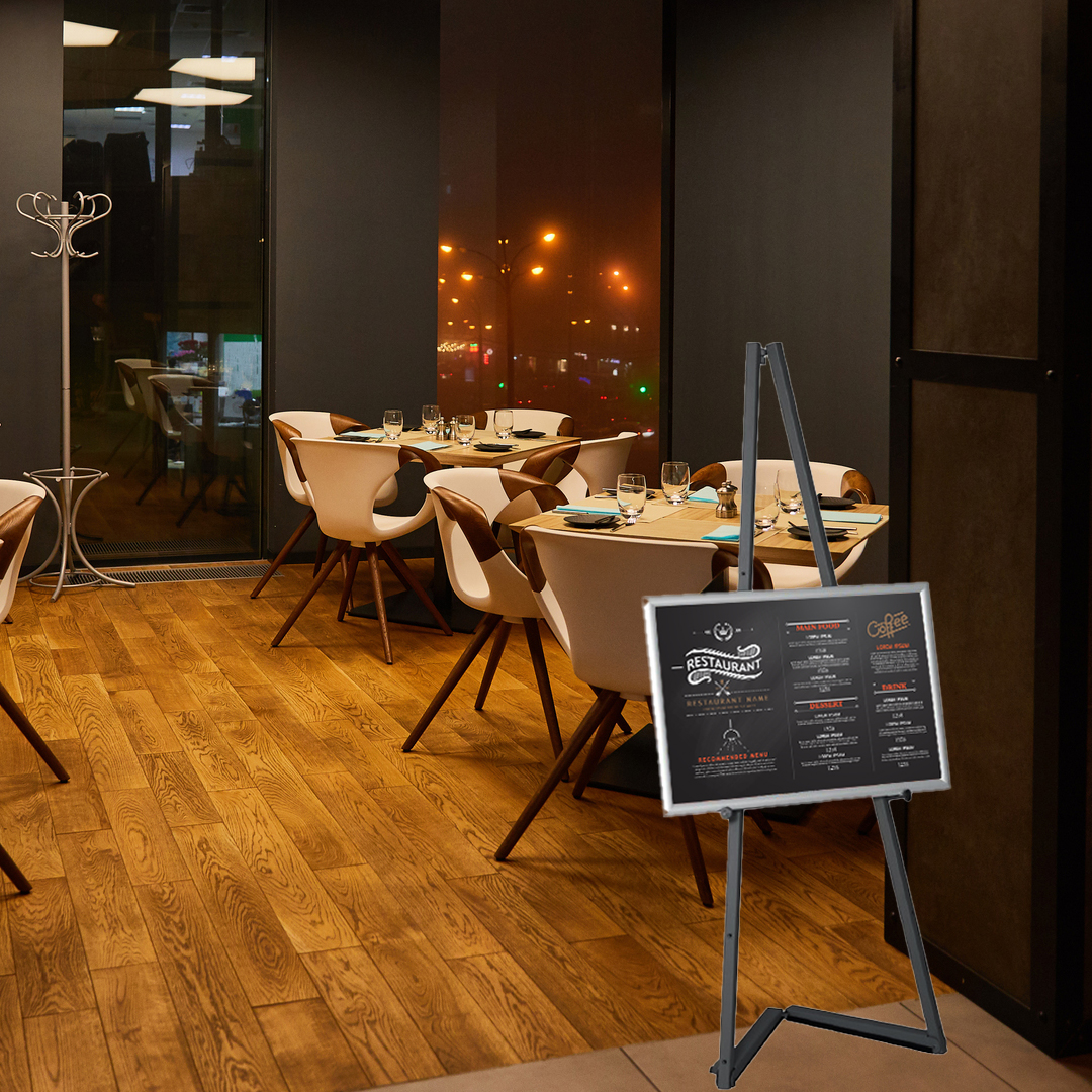 - Chevalet en acier noir, utilisable en intérieur / extérieur.
