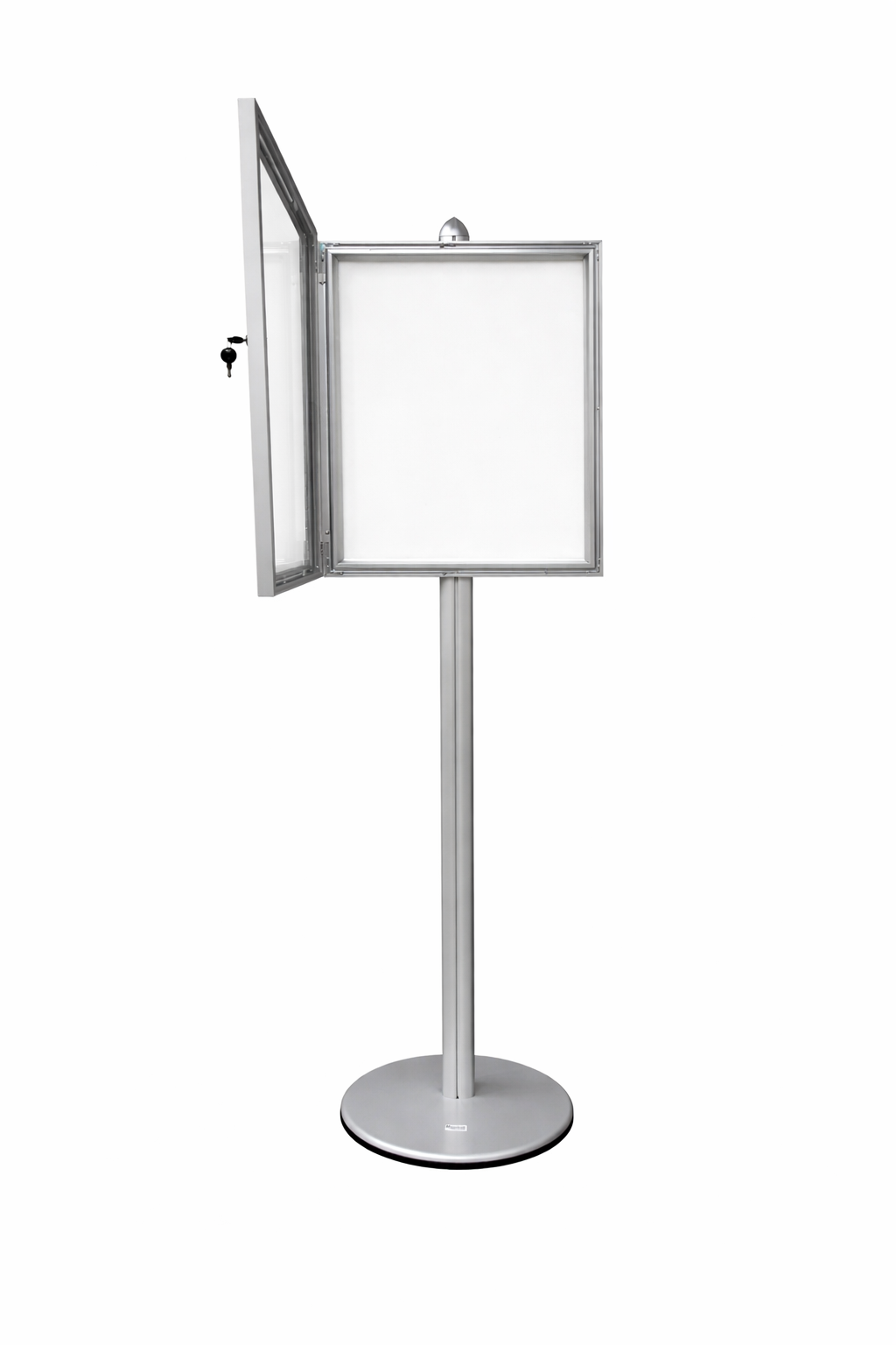 Vitrine d'affichage sur pied gris fond metal 4 feuilles a4 h190cm