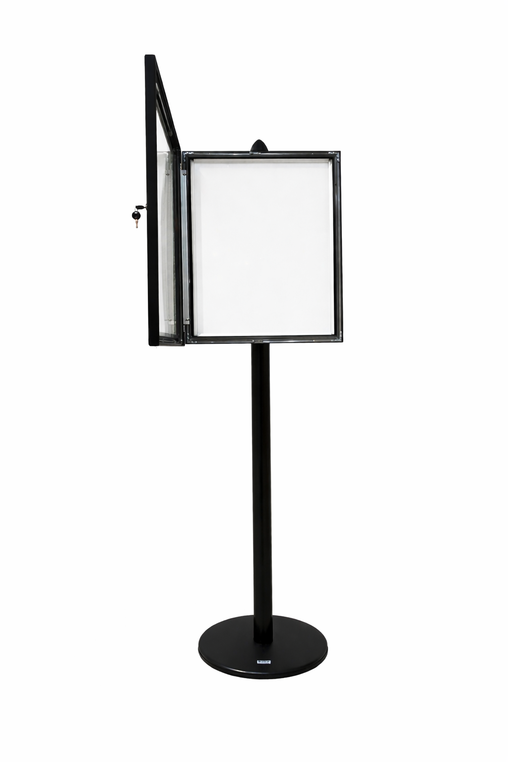 Vitrine d'affichage sur pied noir fond metal 4 feuilles a4 h190cm