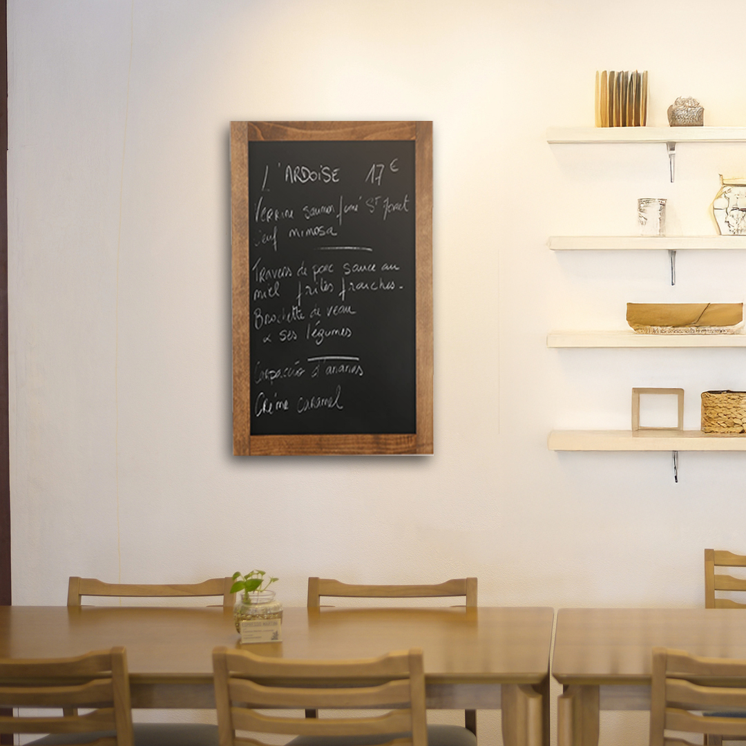 - Pour écriture avec des feutres à craie ou avec craie naturelle.