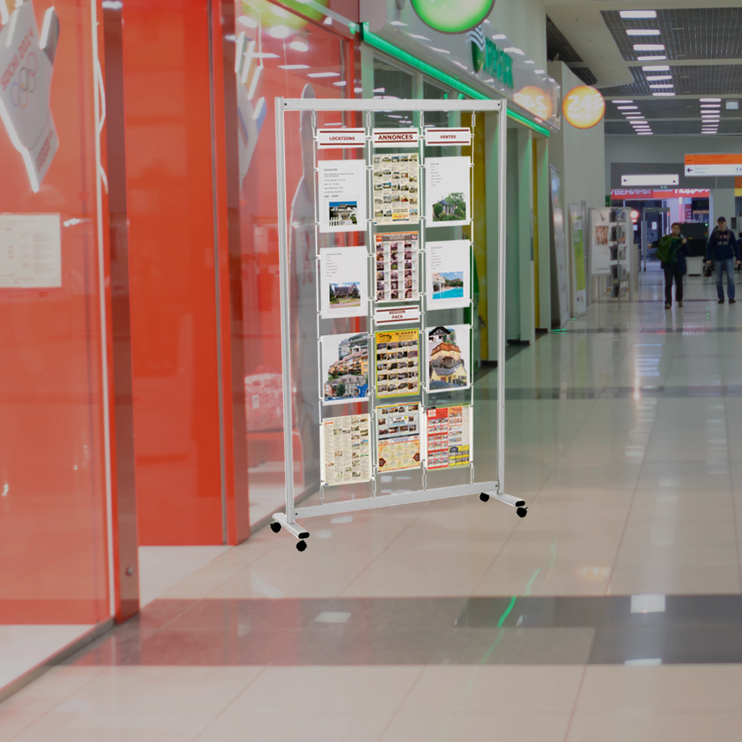 - A équiper avec système d'affichage par câbles + pinces + porte-affiches.