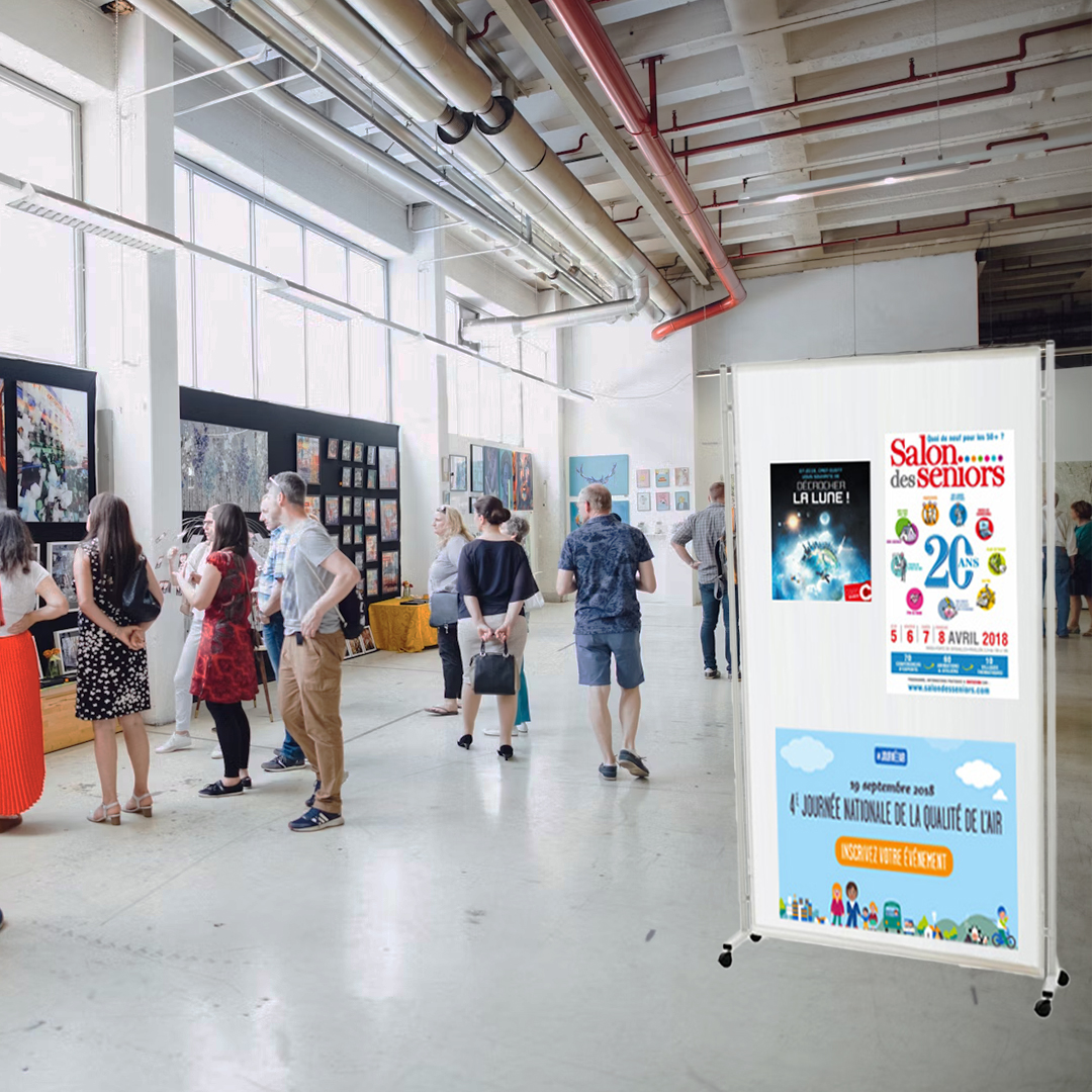 Permet de montrer une information personnalisée dans n’importe quel lieux grâce à son panneau effaçable et ses roulettes
