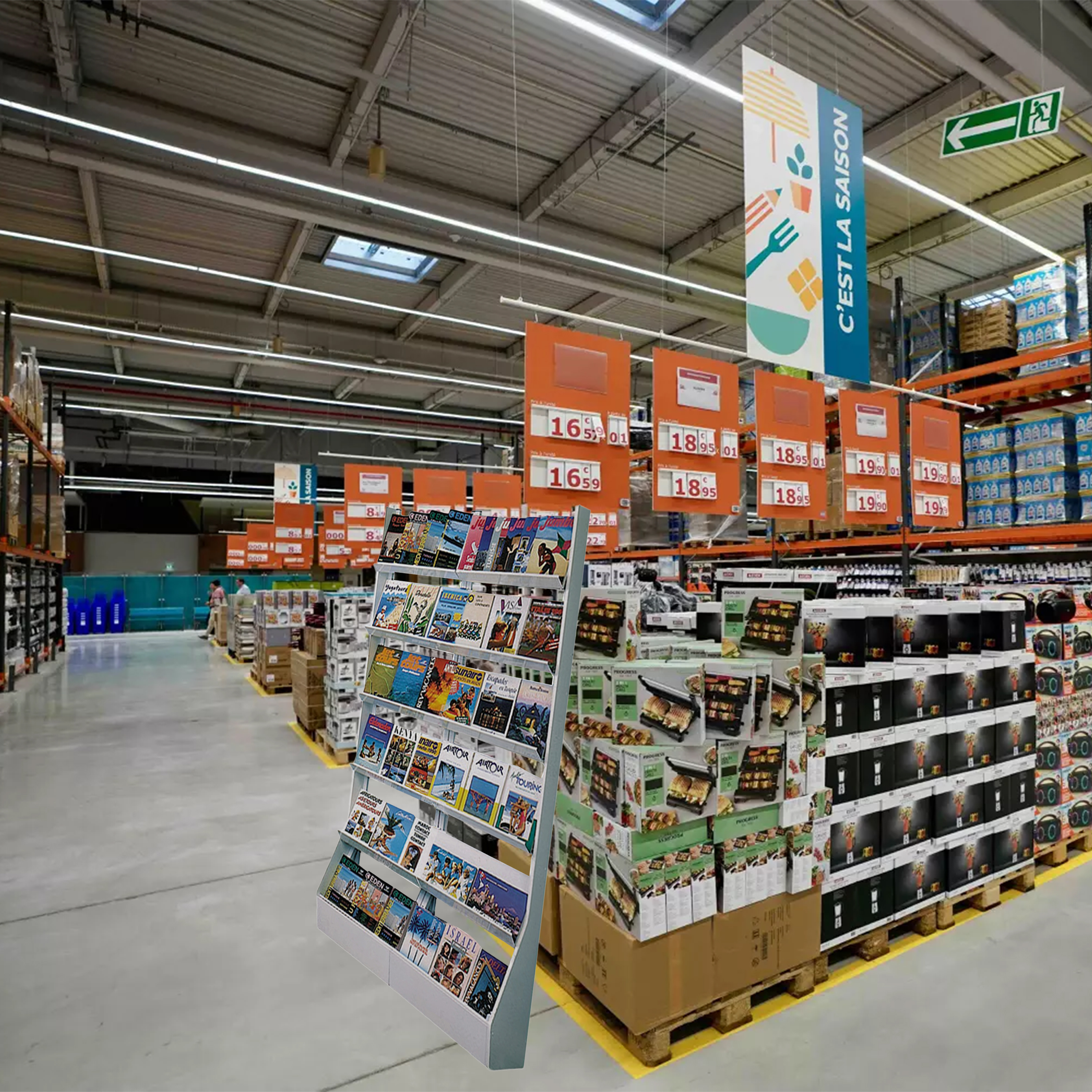 - Utilisation en magasin, agence, boutique ou accueil pour la mise à disposition du public de vos catalogues, prospectus et brochures.