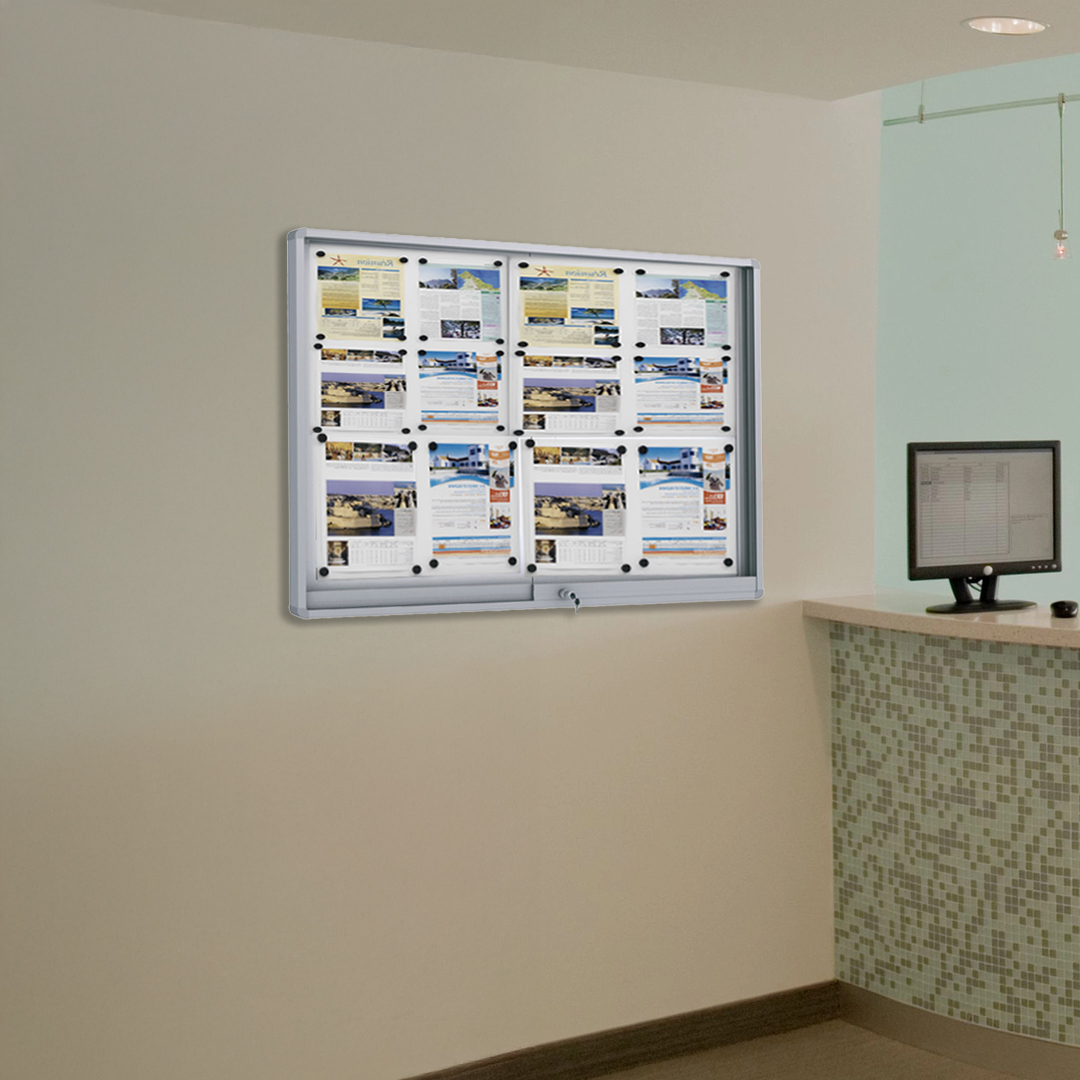 • Il existe deux types de fonds : en liège pour afficher avec des punaises-épingles ou en métal laqué blanc pour afficher avec des aimants.