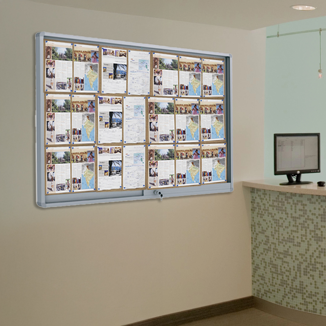 - Il existe deux types de fonds : en liège pour afficher avec des punaises-épingles ou en métal laqué blanc pour afficher avec des aimants.