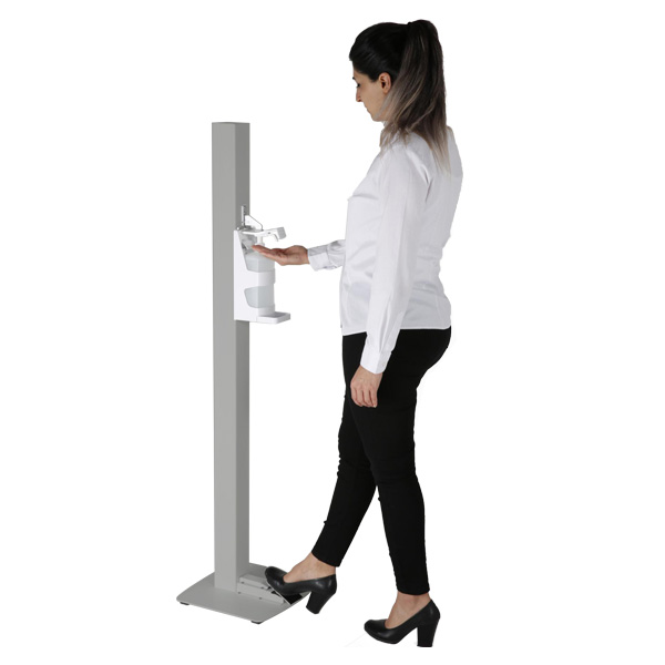 Distributeur Budget. Une légère pression du pied sur la pédale suffit pour faire couler le produit.