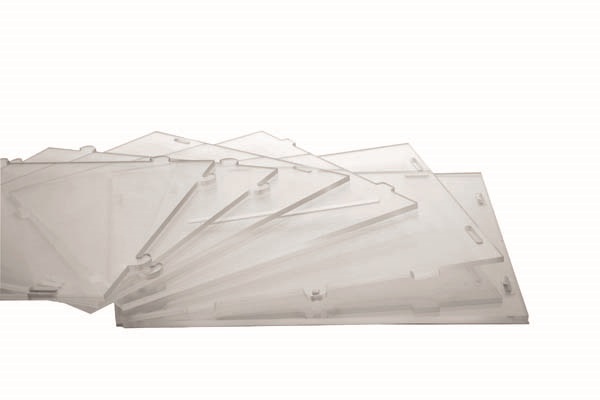 - Matière plastique cristal transparent rigide, épaisseur 3 mm.