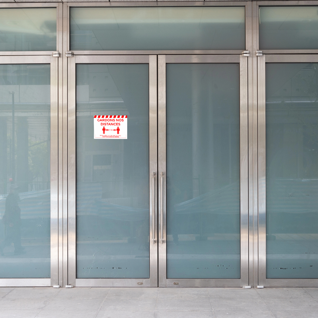 Panneaux de signalisation "Gardons nos distances" pour rappeler les distances de sécurité à respecter.