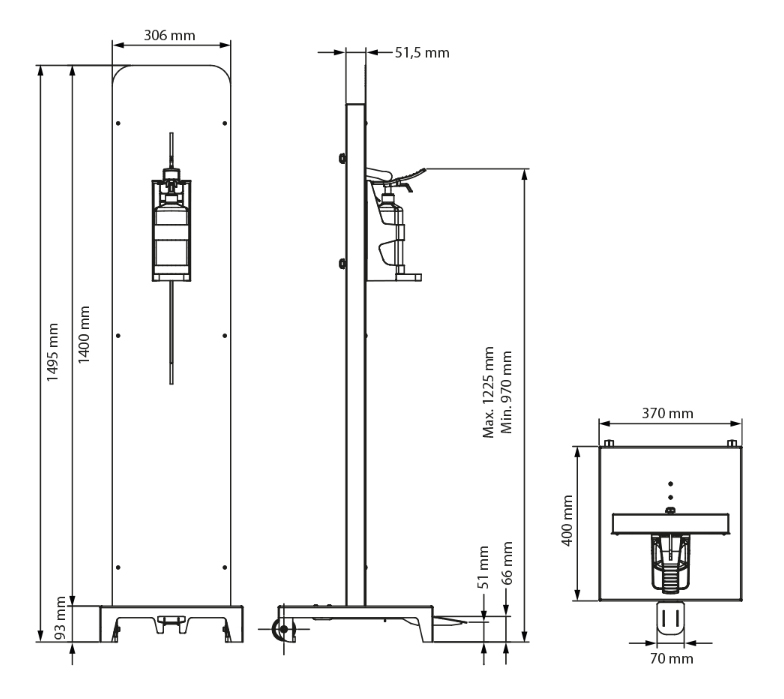 - Réservoir distributeur réglable en hauteur de 97 à 123 cm. Accessible PMR.